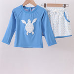Blue beach sea turtle applique swimsuit set