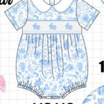 Hop into adorable style with this charming blue bunny bubble! Featuring a smocked Peter Pan collar and whimsical bunny design, this playful piece brings storybook charm to any little one's wardrobe. The soft bubble silhouette offers comfortable movement for active play, while the classic Peter Pan collar adds a touch of timeless elegance. Perfect for special occasions or everyday adventures, this sweet bunny bubble is sure to make your child smile.
