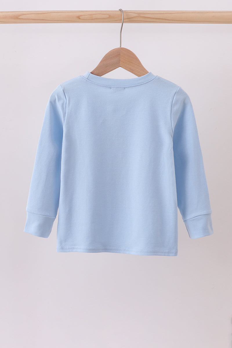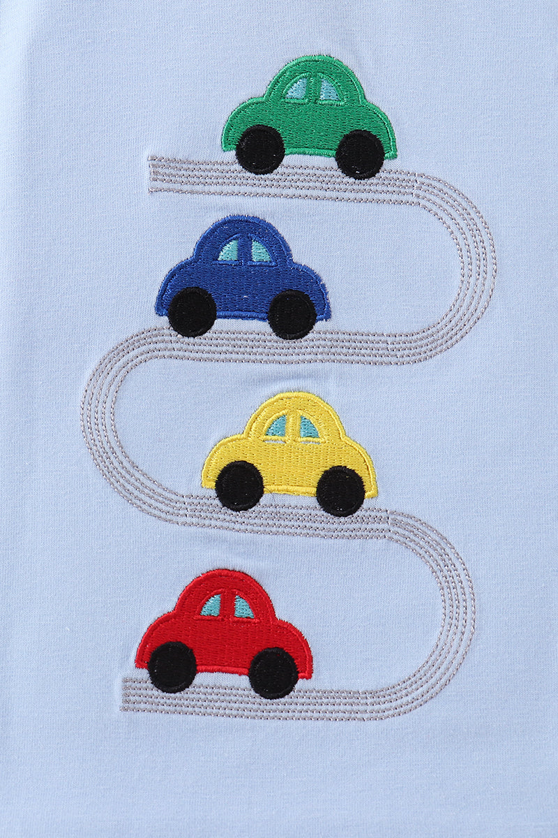 Blue car embroidery top - 12 Months is backordered and will ship as soon as it is back in stock.