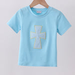 Blue cross applique top