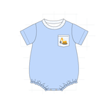 Introduce little builders to big dreams with this charming blue excavator embroidery bubble. Featuring detailed embroidered excavator design on soft, durable fabric, this bubble offers comfort and style for active play. Perfect for construction-themed outfits, it's an ideal choice for toddlers and kids who love vehicles and outdoor adventures. Machine washable for easy care.
