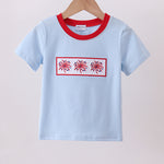Blue fireworks embroidery top - 12 Months is backordered and will ship as soon as it is back in stock.
