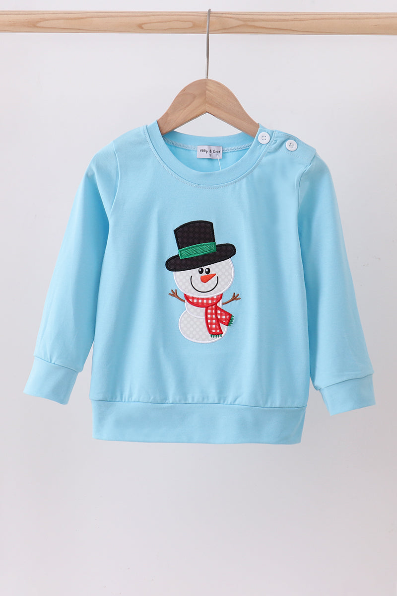 Blue snowman applique top