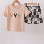 Green hunting deer embroidery checkered shorts set - 12 Months is backordered and will ship as soon as it is back in stock.