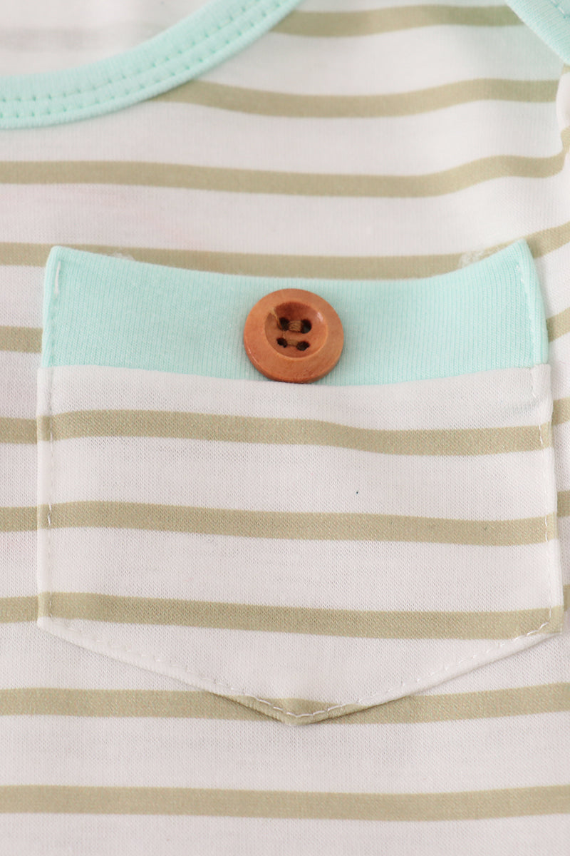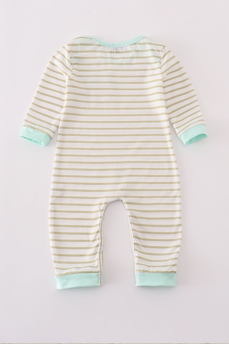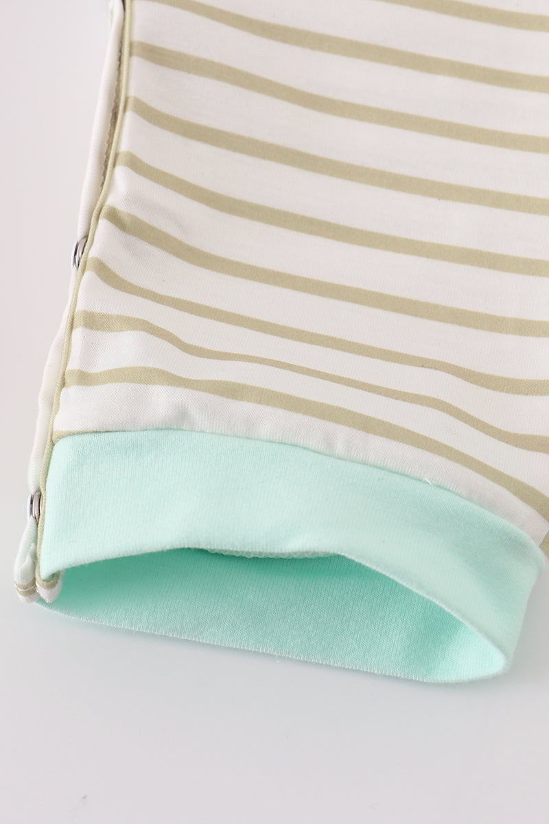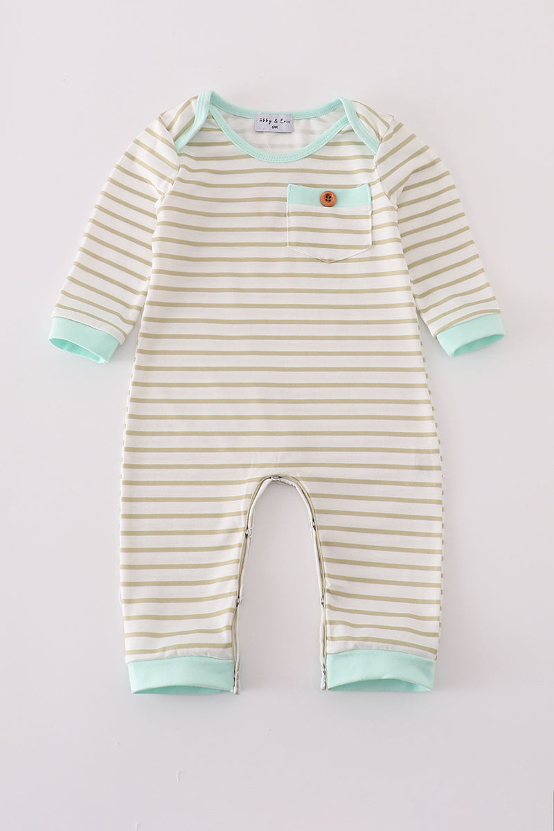 Khaki stripe romper - 12 Months is backordered and will ship as soon as it is back in stock.