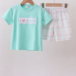 Mint I love Dad plaid shorts set - 12 Months is backordered and will ship as soon as it is back in stock.