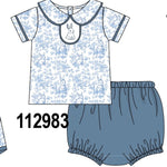 Navy bunny embroidery peter pan collar bloomer set