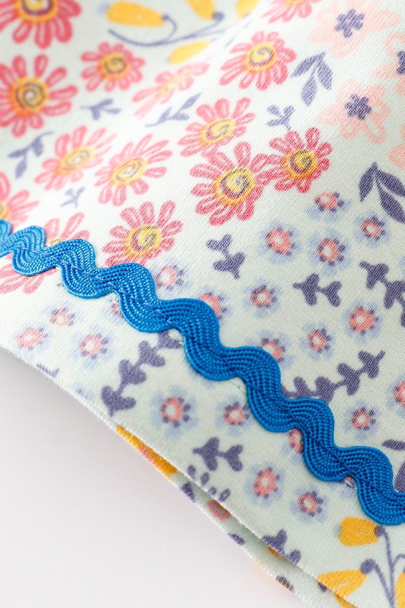 Platinum Blue floral print ruffle dress - 12M is backordered and will ship as soon as it is back in stock.