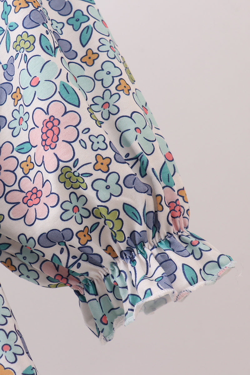 Blue floral blessed embroidery dress