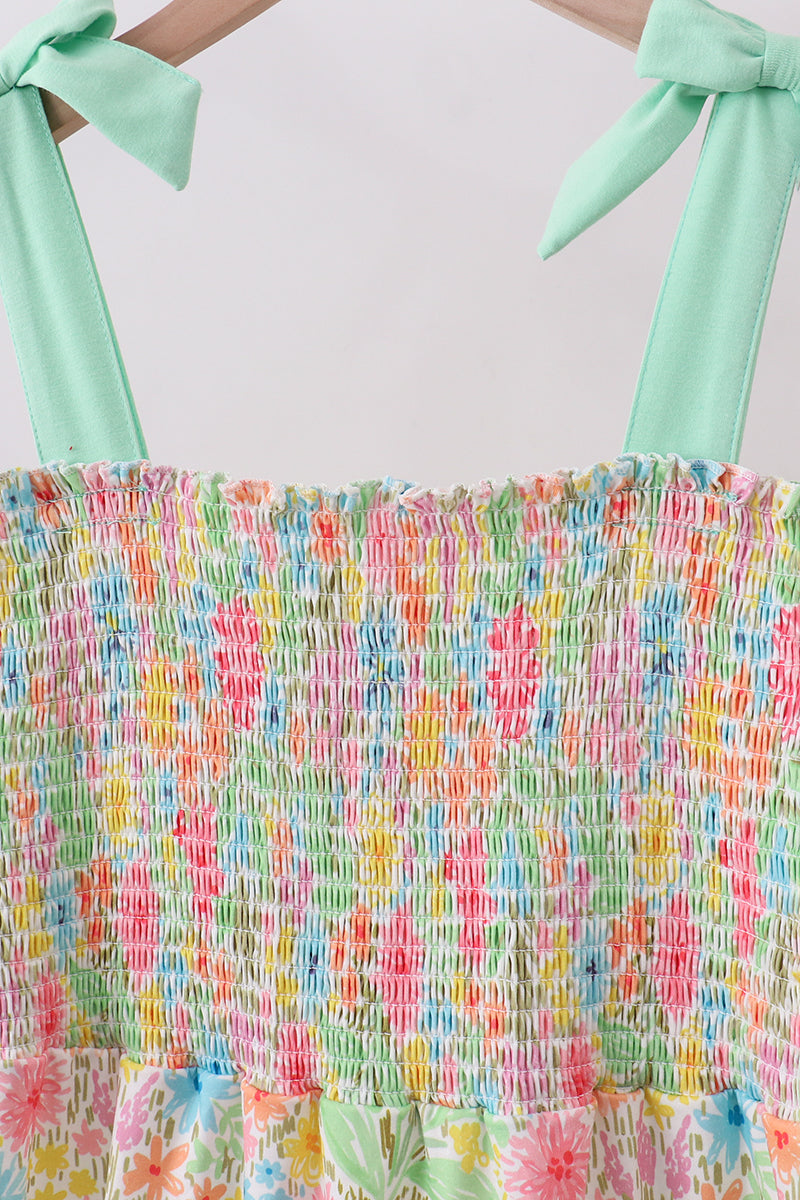 Pink floral smocked tiered dress