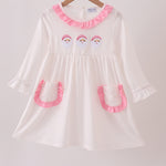 Pink santa claus embroidery ruffle dress - 12 Months is backordered and will ship as soon as it is back in stock.