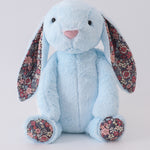 Blue floral plush bunny - One Size is backordered and will ship as soon as it is back in stock.