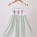 Green cross embroidery gingham dress - 12 Months is backordered and will ship as soon as it is back in stock.