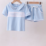 Comfortable and stylish shorts set featuring classic blue tones with charming embroidered brother-themed pocket details. Perfect for casual wear, these shorts combine playful design elements with practical functionality. The embroidered pockets add a unique touch that makes this set stand out from everyday basics. Ideal for relaxed outings, loungewear, or casual family moments. Quality construction ensures durability through regular wear and washing.