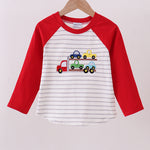 Red car embroidery stripe top - 12 Months is backordered and will ship as soon as it is back in stock.