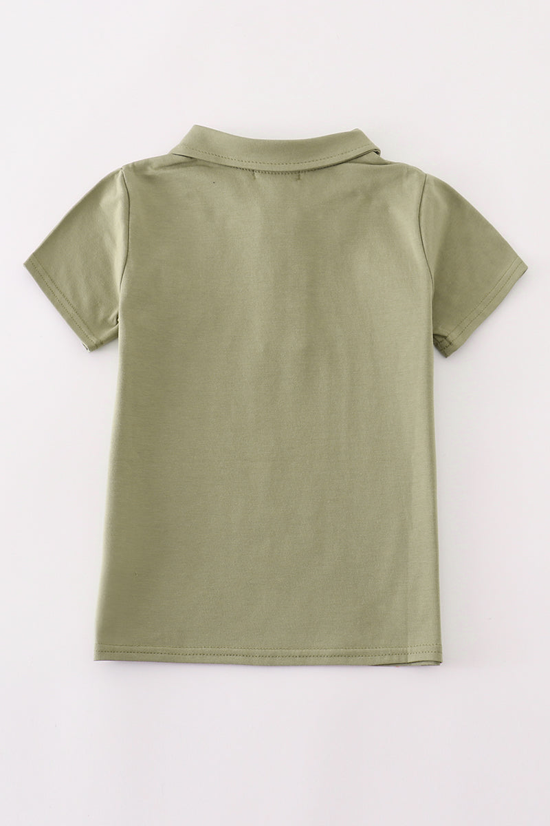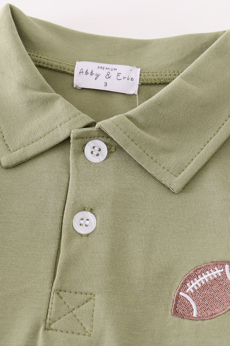Premium Sage football embroidery boy shirt - 12M is backordered and will ship as soon as it is back in stock.