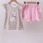 Hop into springtime style with this adorable floral bunny applique ruffle shorts set! Featuring a charming bunny design with delicate floral details, this playful two-piece set combines comfort with cuteness. The ruffled shorts add a whimsical touch perfect for playdates, casual outings, or everyday wear. Soft, breathable fabric keeps little ones comfortable all day long. An instant favorite for bunny lovers and flower enthusiasts alike!