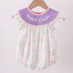 Purple floral happy easter embroidery bubble - 2 Years is backordered and will ship as soon as it is back in stock.