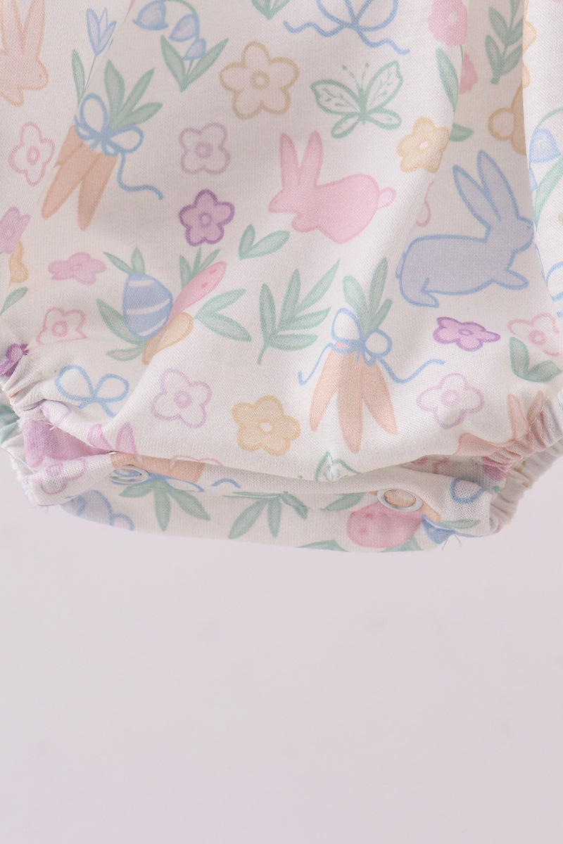 Get ready for egg hunts and spring celebrations with this adorable purple bubble! Featuring cheerful "Happy Easter" embroidery surrounded by pretty floral details, this playful piece brings festive charm to your little one's holiday wardrobe. The classic bubble silhouette offers comfort and freedom for all their springtime adventures, while the sweet purple hue and delicate stitching make it perfect for Easter photos and family gatherings. Whether they're hunting for eggs or enjoying a special brunch, this embroidered bubble captures all the joy and magic of the season!