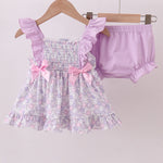 Twirl in style with this adorable purple floral bloomer set! Featuring delicate smocking details and charming ruffled edges, this two-piece ensemble is perfect for playdates, special occasions, or everyday adventures. The soft, breathable fabric keeps little ones comfortable while the cheerful floral print adds a pop of personality. Mix and match the pieces for endless outfit possibilities. A wardrobe essential that's as fun as it is functional!