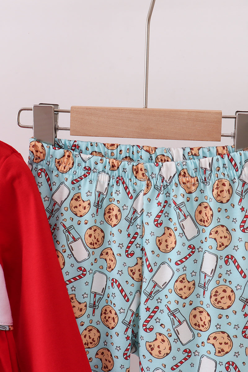 Get ready for festive fun with this playful Red Santa Claus cookie French knot ruffle pants set. Featuring charming Santa and cookie details paired with delicate French knot textures, these ruffle-trimmed pants add a whimsical touch to holiday outfits. Perfect for spreading cheer in style and comfort during the season!