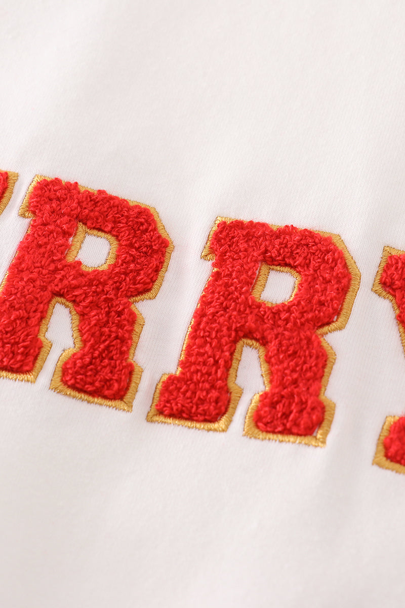 White merry christmas french knot women top - S is backordered and will ship as soon as it is back in stock.