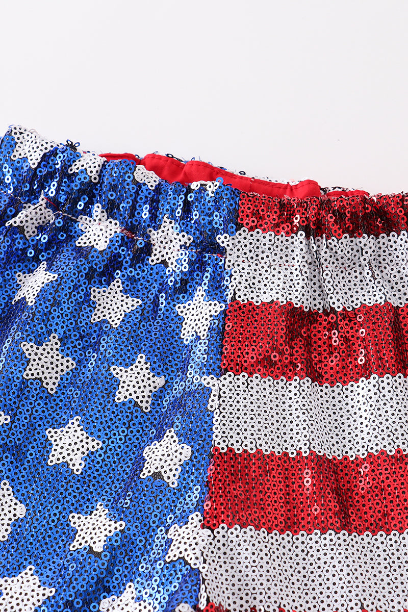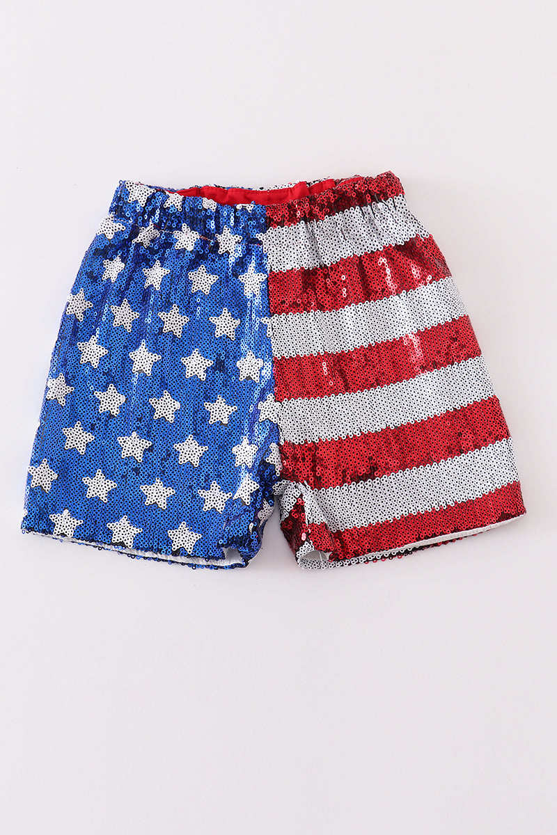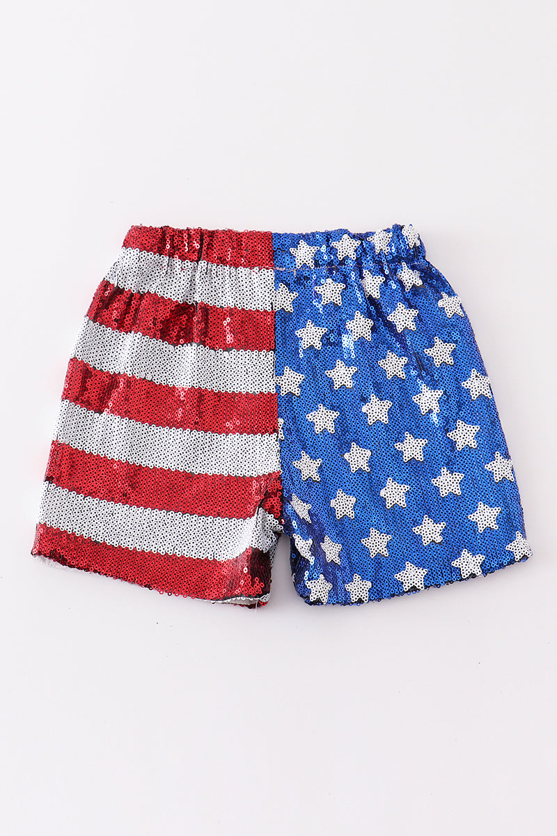 Patriotic sequin woman shorts - XS is backordered and will ship as soon as it is back in stock.