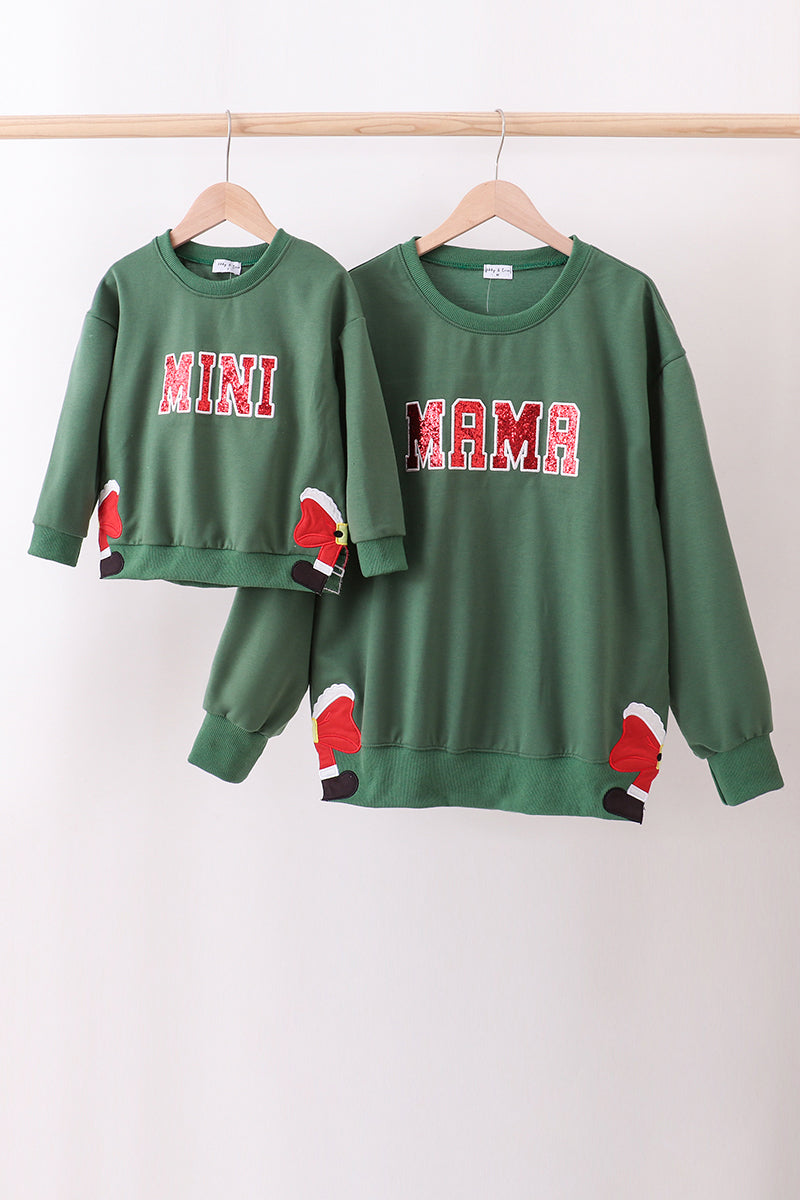 Celebrate the season in style with this playful Green Christmas MAMA glitter top. Sparkling with festive glitter, it brings holiday cheer to any outfit while showing off your festive spirit. Perfect for cozy family gatherings or lively holiday parties, this top adds a fun, sparkling touch to your celebrations. Embrace the joy of the season with a look that's merry, bright, and totally you!