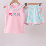 Pink bow french knot ruffle skort set