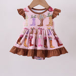 Pink floral boots bamboo ruffle bubble - Newborn is backordered and will ship as soon as it is back in stock.