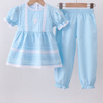 Blue cross embroidery lace pants set - 12 Months is backordered and will ship as soon as it is back in stock.