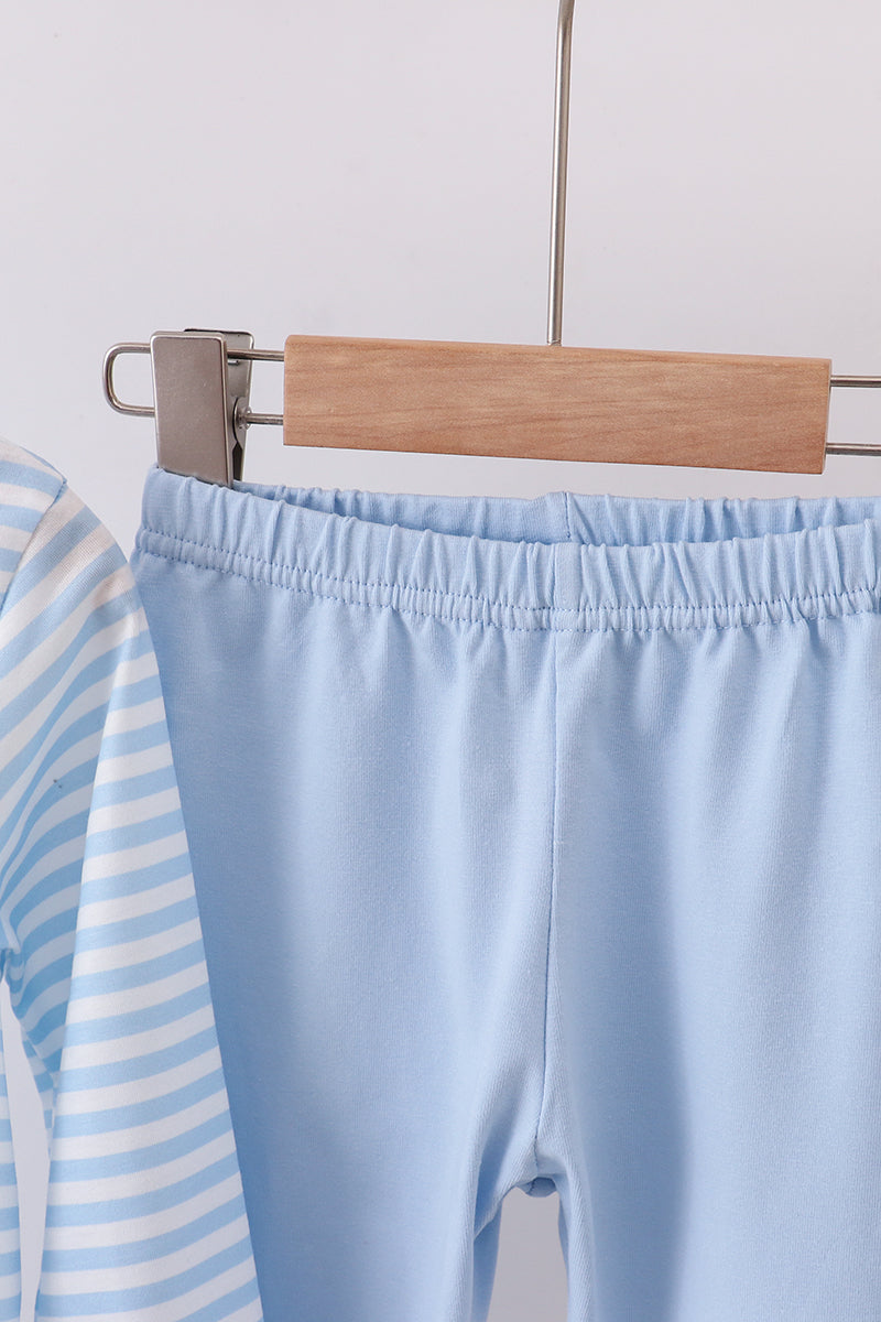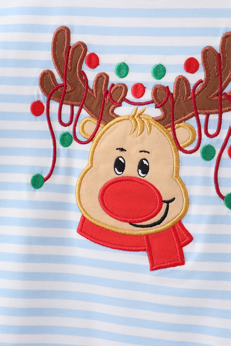 Blue stripe reindeer applique ruffle pants set