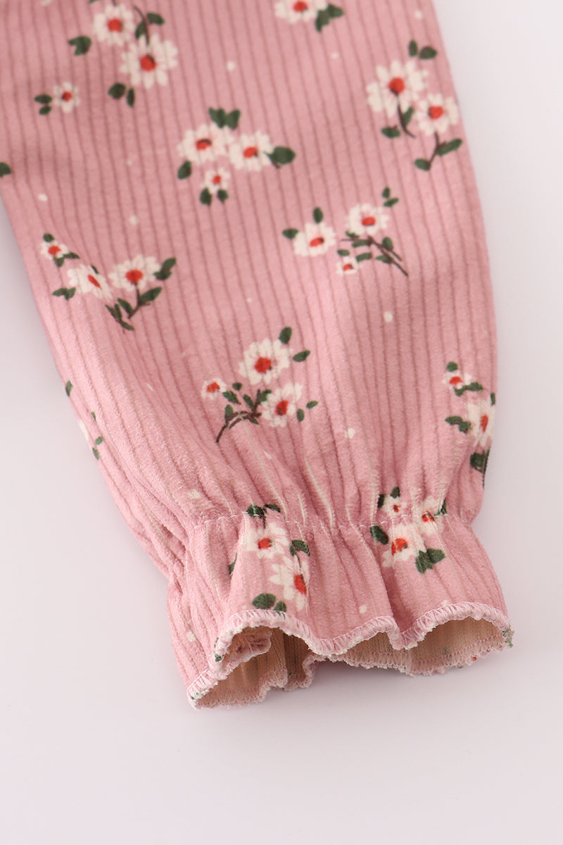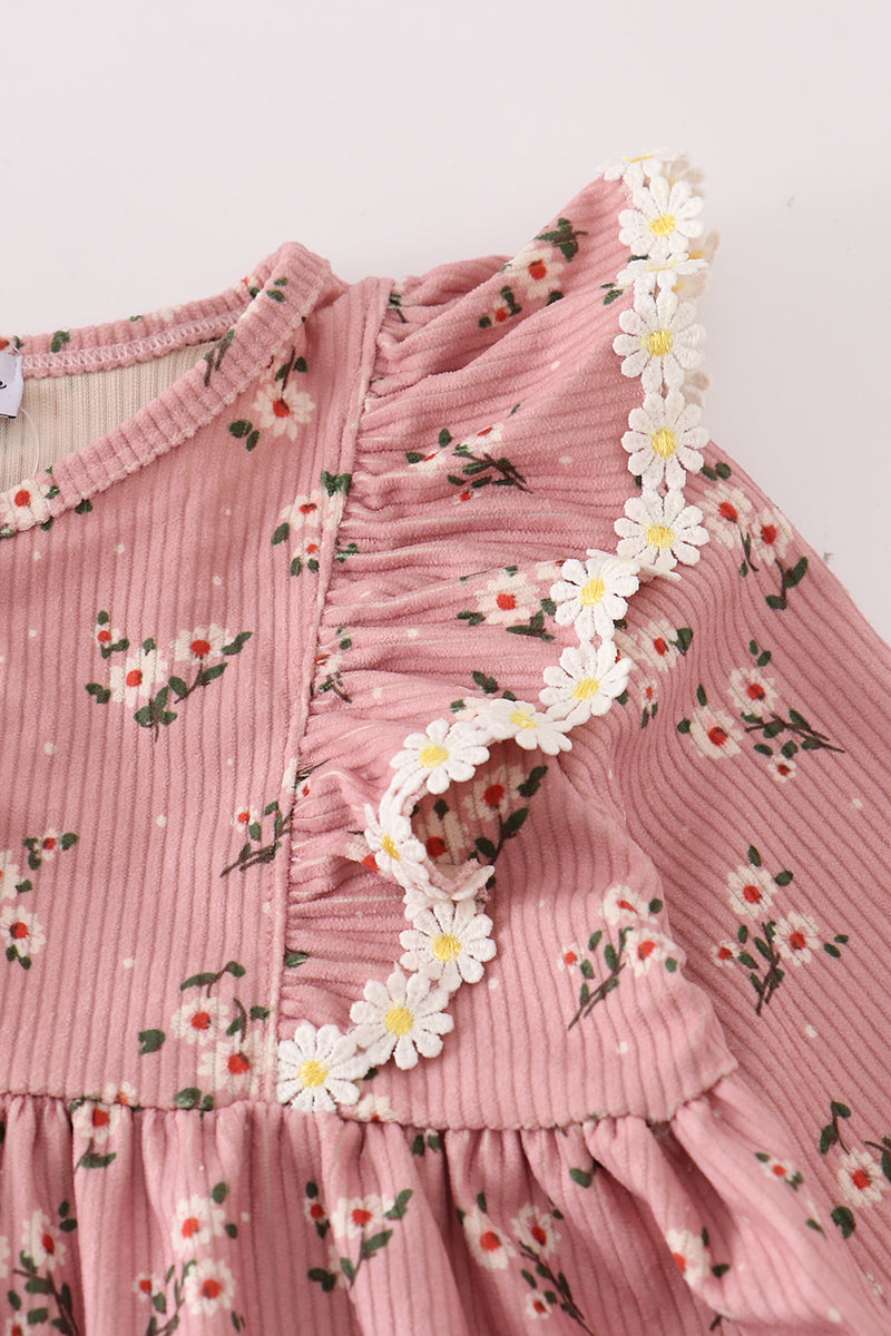 Step into charm and comfort with this Floral Corduroy Lace Ruffle Pants Set. Soft corduroy fabric meets delicate lace and playful ruffles, creating a whimsical outfit perfect for brightening any day. Whether lounging or out on an adventure, this set adds a touch of fun and flair to your wardrobe.