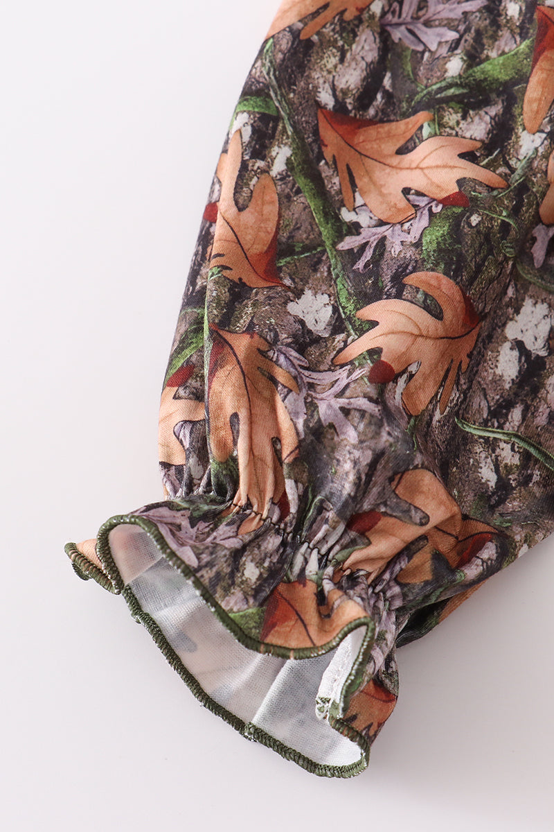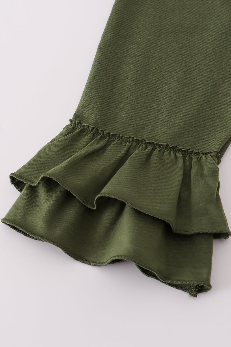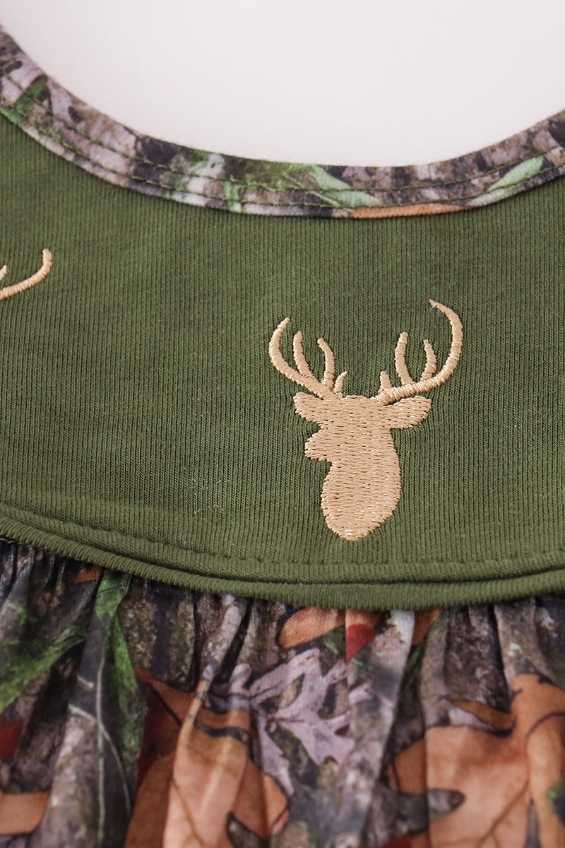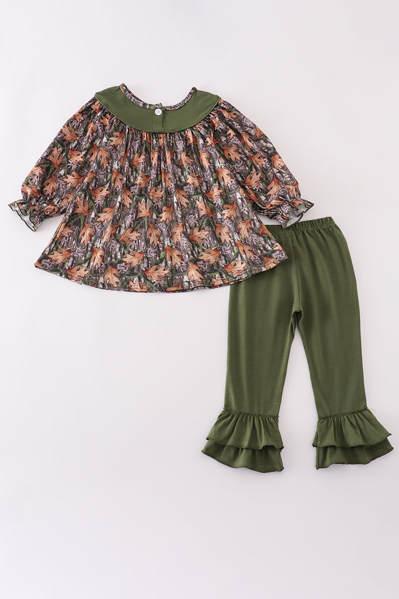 Forest hunting deer embroidery ruffle pants set - 7 Years is backordered and will ship as soon as it is back in stock.
