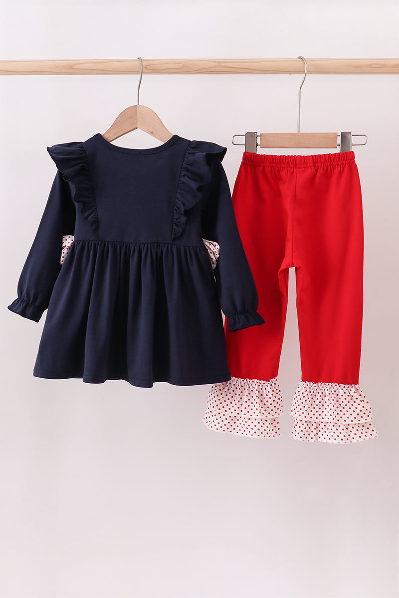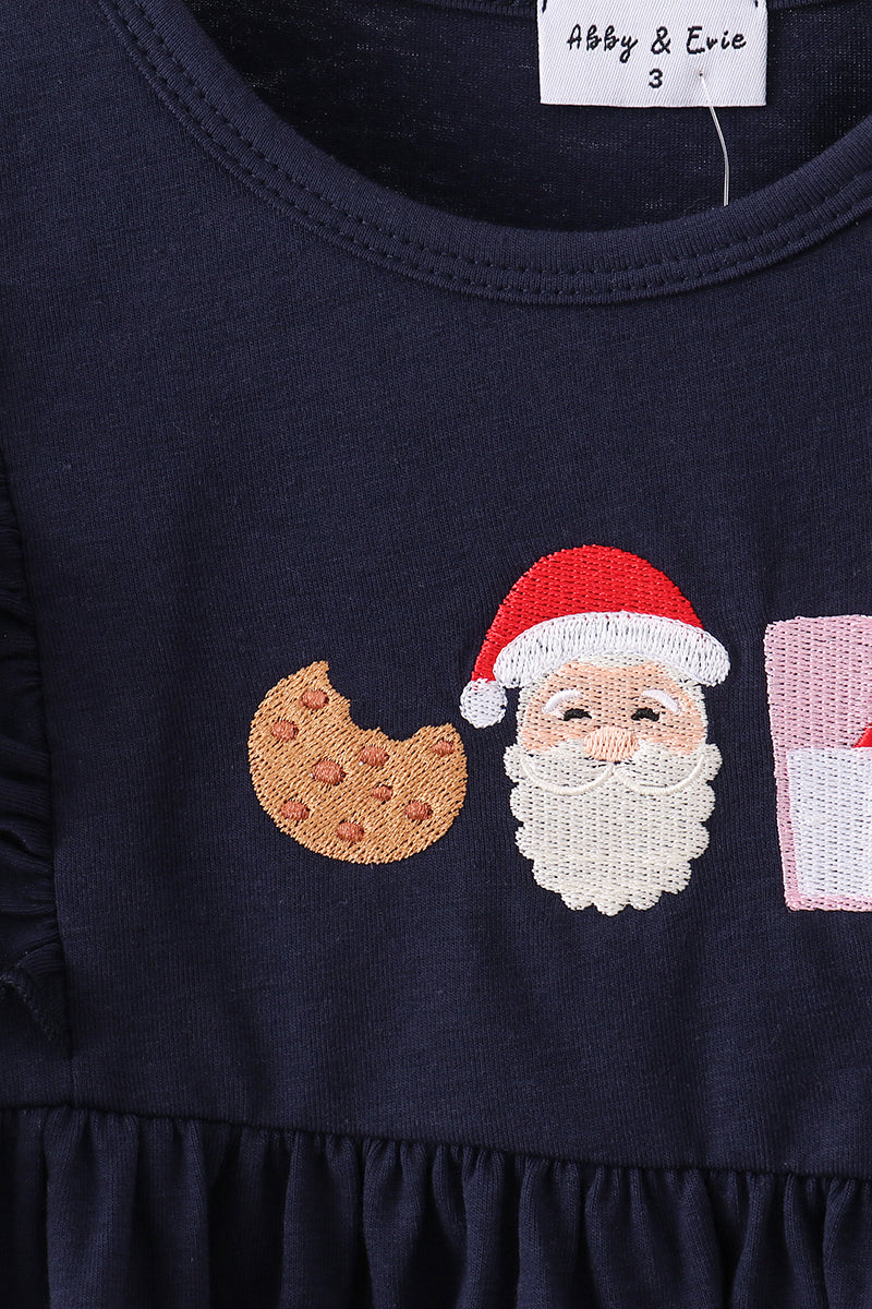 Navy christmas santa cookie milk embroidery ruffle pants set