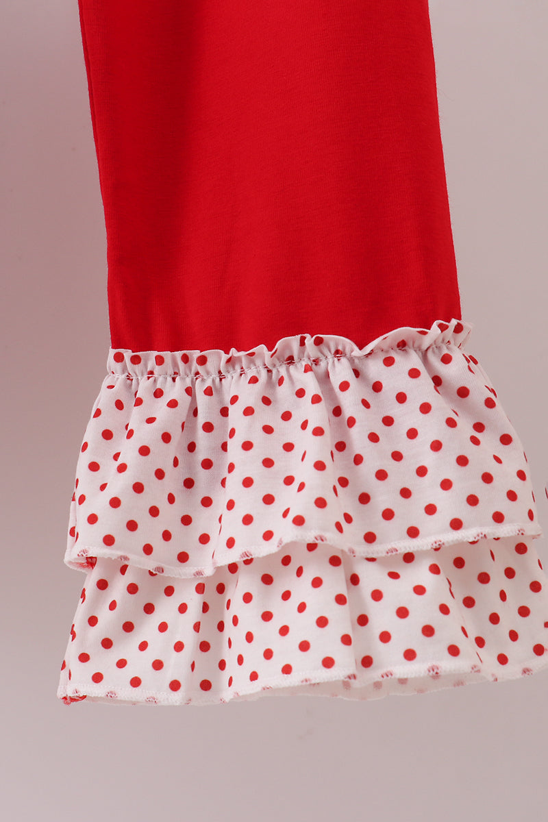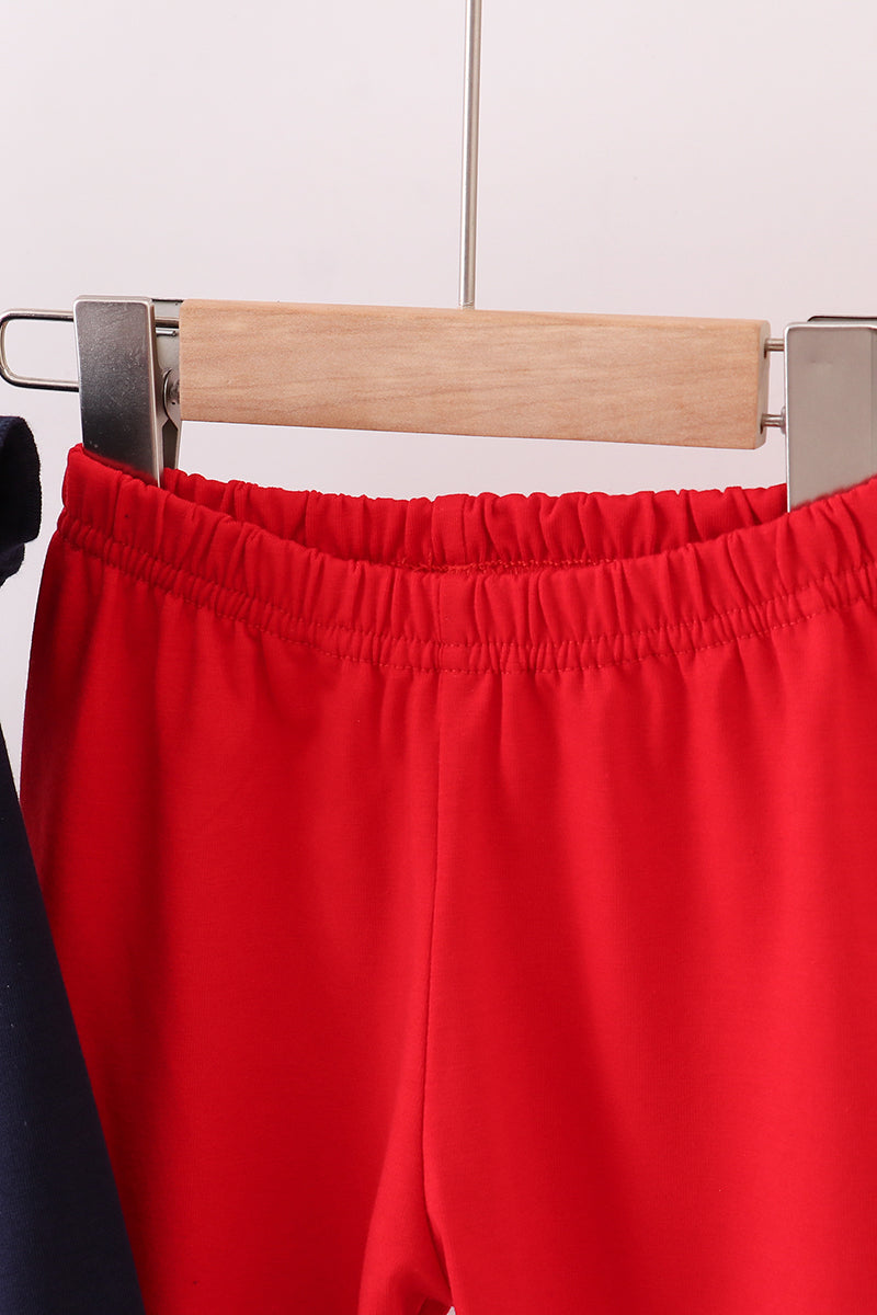 Get your little one holiday-ready with this playful navy pants set featuring charming Santa, cookie, and milk embroidery. Soft ruffle details add a festive touch and extra comfort, making it perfect for cozy Christmas mornings and festive gatherings. Designed to bring joy and style to your child's holiday wardrobe!