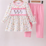 Pink duck embroidery pants set