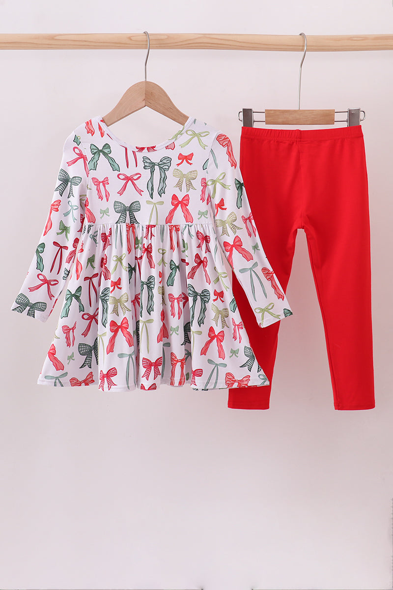 Red bow bamboo pajamas dress set - 7 Years is backordered and will ship as soon as it is back in stock.