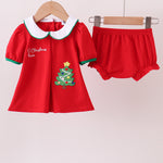 Get your little one holiday-ready with this charming Red Christmas Tree Applique Bloomer Set. Crafted for comfort and festive fun, the bright red bloomers are adorned with a whimsical Christmas tree applique, adding a playful touch to any holiday outfit. Perfect for cozy gatherings or photo ops, this set brings joyful cheer in every stitch.