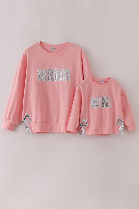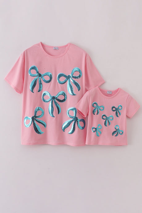 Pink MINI bow glitter mom&me...