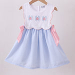 Blue crab embroidery seersucker bow dress
