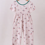 Waddle into comfort with our adorable Duck Bamboo Jumpsuit! This whimsical one-piece features soft, eco-friendly bamboo fabric that's gentle on skin and kind to the planet. Perfect for little ones who love all things feathered and fun, it combines playful duck-inspired design with practical comfort. The breathable material keeps kids cool and cozy, while the jumpsuit style makes dressing a breeze. Whether it's playtime, bedtime, or adventure time, this charming piece brings joy and sustainability together in one quack-tastic outfit.