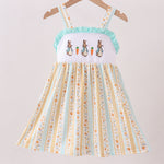 Floral bunny embroidery ruffle dress