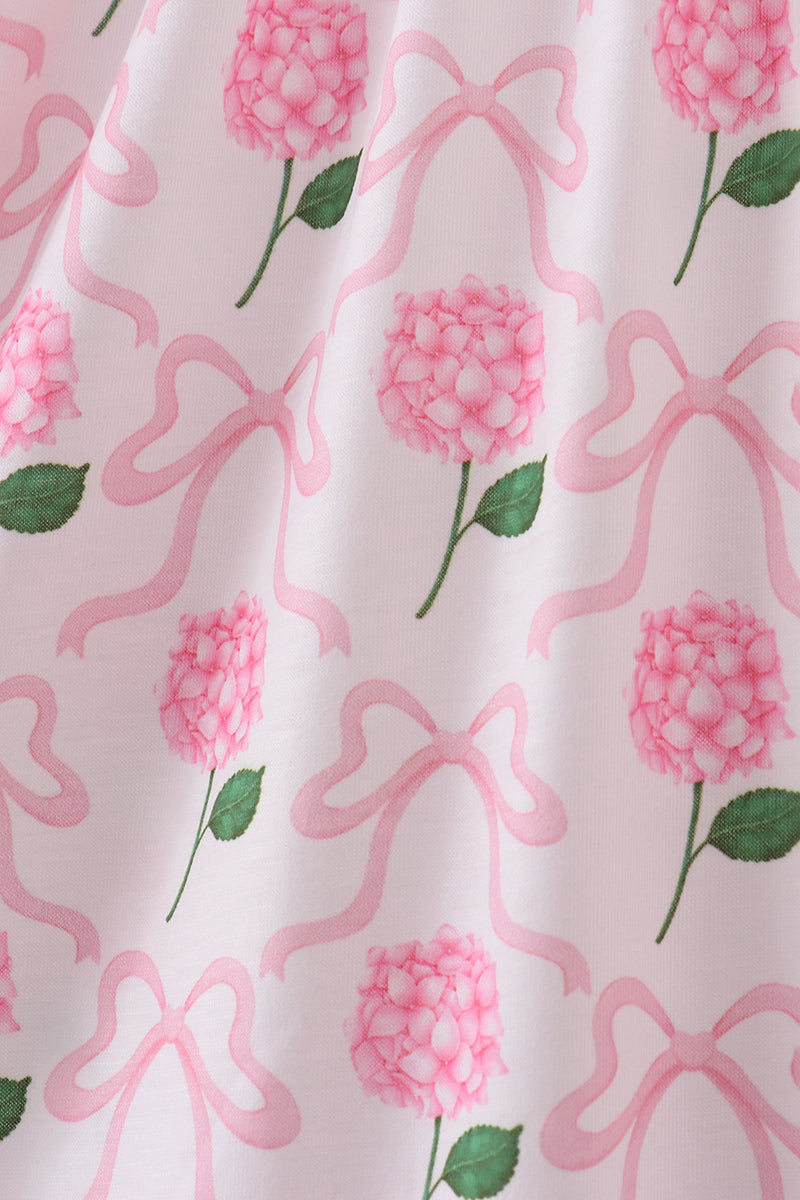 Pink bow hydrangea smocked dress
