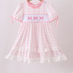 Pink bow smocked ruffle dress