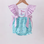 Purple mermaid embroidery ruffle bubble - 9 Months is backordered and will ship as soon as it is back in stock.