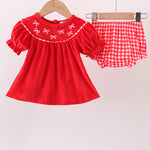 Red bow embroidery velvet bloomer set - Newborn is backordered and will ship as soon as it is back in stock.