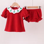 Red christmas tree embroidery fleece bloomer set - Newborn is backordered and will ship as soon as it is back in stock.