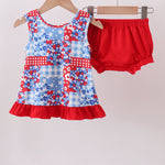 Red floral print bloomer set