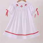 White santa claus smocked dress - 12 Months is backordered and will ship as soon as it is back in stock.